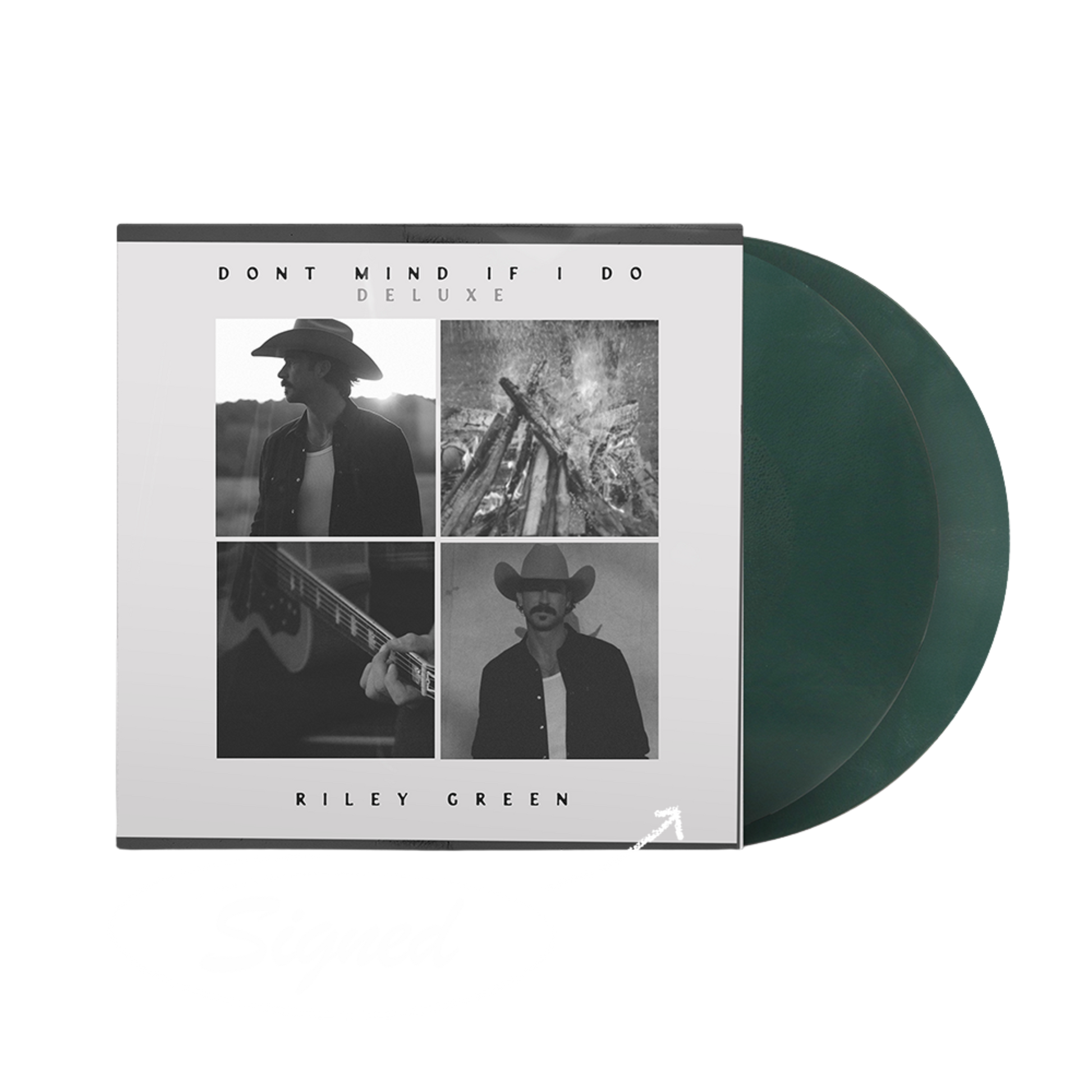 SIGNED Deluxe Edition of Riley Green's latest studio album, Dont Mind If I Do, is now available on dark green vinyl.